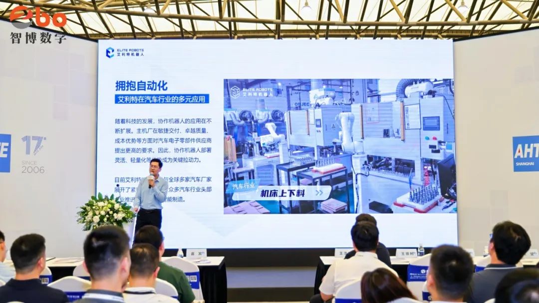 艾利特應邀出席這場智能裝配及自動化領域國際盛會,并在今日舉辦的智能工業低碳制造AI視覺&機器人技術與裝配系統集成大會上,發表主題演講,與眾嘉賓共同探討中國下一代協作機器人與汽車自動化。