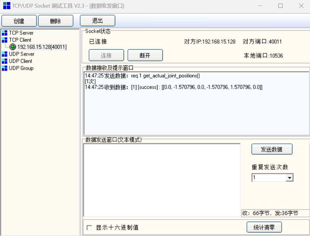 使用socket tool等工具,連接機(jī)器人40011端口,進(jìn)行測(cè)試。