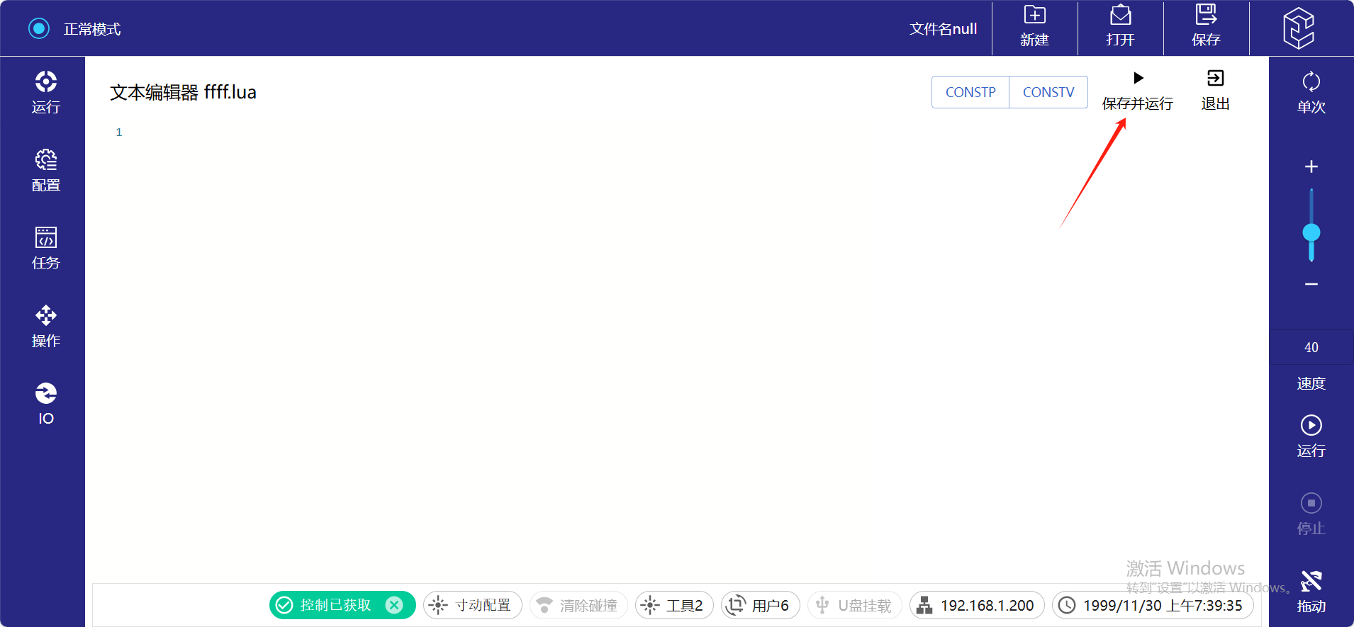 3. 程序編輯好后可以點(diǎn)擊保存并運(yùn)行進(jìn)行測(cè)試。
