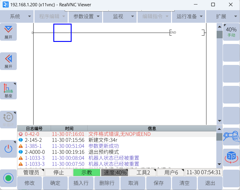 用戶plc一般只用作簡(jiǎn)單的機(jī)器人功能配置,不能當(dāng)做邏輯控制器使用,編寫復(fù)雜程序會(huì)導(dǎo)致無(wú)法保存。