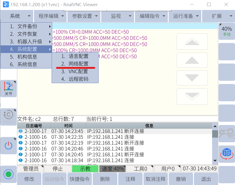 VNC是一款優秀的遠程控制工具,Elite_EC系列機器人內部已經集成VNC服務器,用戶可以通過網線鏈接即可在電腦上進行查看、控制機器人的示教器界面。