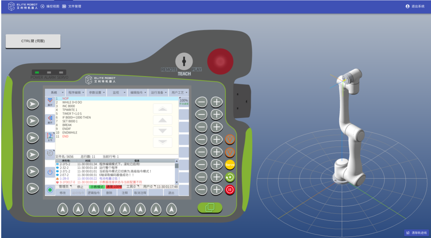 注:3.12以下3.0.1以上的版本機器人版本支持網頁示教器,支持示教器的界面顯示和控制,以及機器人模型的實時顯示和對應軌跡線的顯示,同時還支持編寫機器人的jbi運行程序和lua腳本程序。