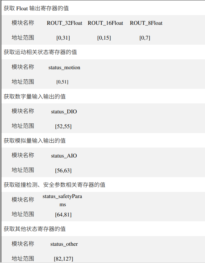 9. 具體寄存器詳細功能(比如想獲取機器人當前位姿或者角度以及系統狀態這種) 可查找通信協議手冊。