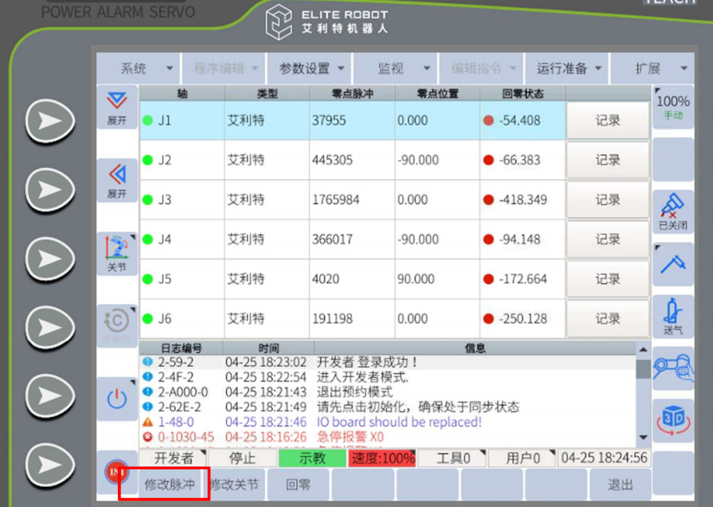 2. 手動把機器人移至零點附近(手臂向上垂直),修改成原來的機械零點脈沖,這是套圈大概率可以解決。