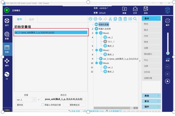 ● 變量路點、相對路點:由于此兩種位置的路點沒有固定的位置信息,所以此類型路點作為起始位置時,機器人會直接從當前位置開始運行任務,不會彈出手動運行到位置的頁面,該邏輯可以實現可變起始安全位置的邏輯。(要注意的是使用變量路點做為起始位置時,要先在初始化變量里對該變量進行賦值,如圖-2紅框所示,如果不進行賦值就會出現報錯)