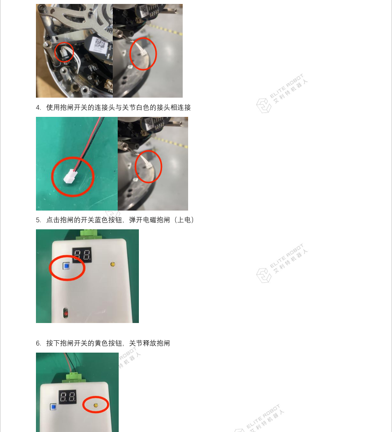 - 伺服關節損壞報警異常后無法通過以上松開抱閘方法操作,需手動松開,具體參考CS服務手冊操作指南