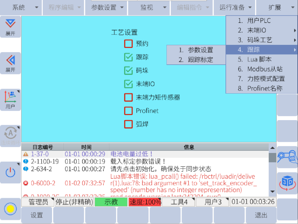 EC機器人打開跟蹤,路徑是 運行準備---工藝配置---[勾選] 跟蹤/傳送帶跟蹤