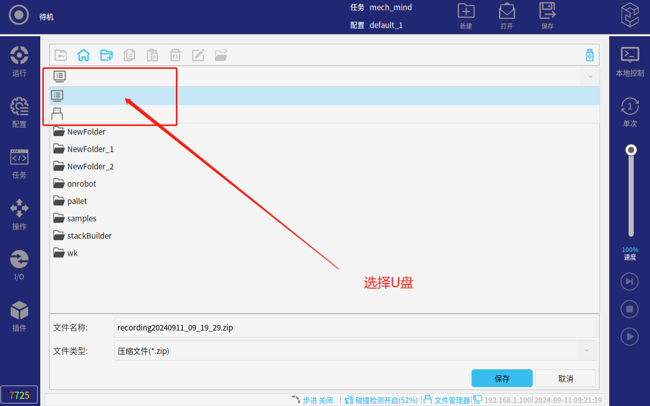 2.1機(jī)器人上插入U(xiǎn)盤,u盤格式是應(yīng)為FAT32,內(nèi)存大小在32G以內(nèi)