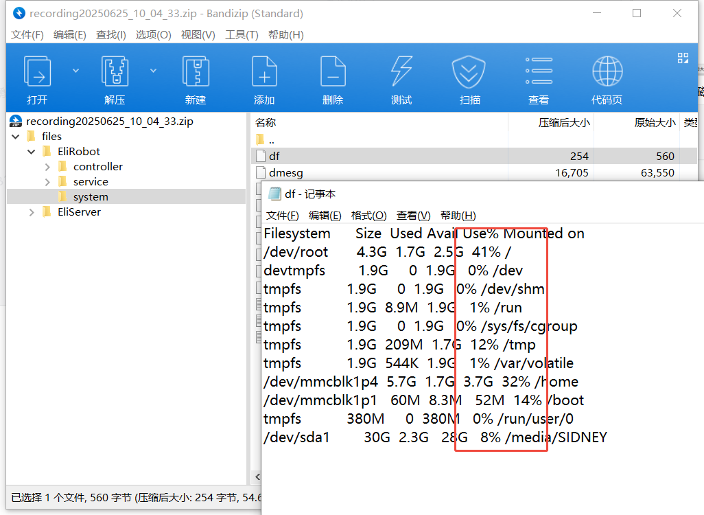 df (系統(tǒng)硬盤掛載狀態(tài),用于排查是否存在系統(tǒng)硬盤占滿等情況)