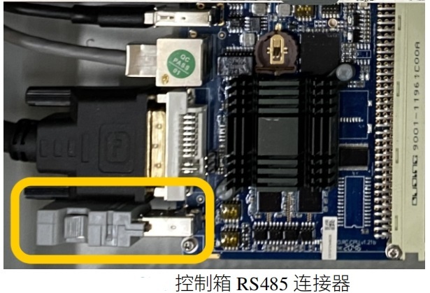在控制柜接口處我們可以看到RS485接口,該接口就是我們的485接口,modbus_rtu時用到該接口,其中針腳3對應485-,針腳4對應485+,如下圖。