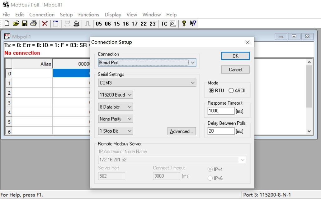 ModBus RTU物理層接口為串口形式。