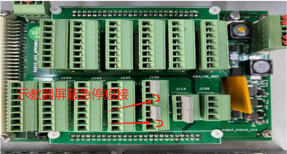 再將控制柜內(nèi)示教器的急停信號進行短接
