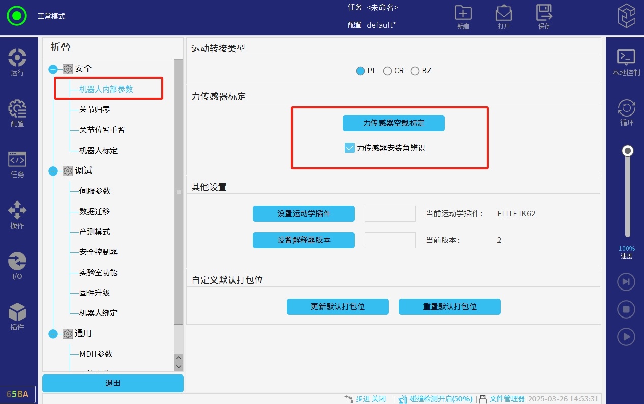 該功能需要打開(kāi)力控插件,才能設(shè)置該參數(shù),用戶(hù)可以自定義碰撞力閾值,當(dāng)力傳感器末端如果感受到相應(yīng)反方向的閾值的力,機(jī)械臂就會(huì)停止。