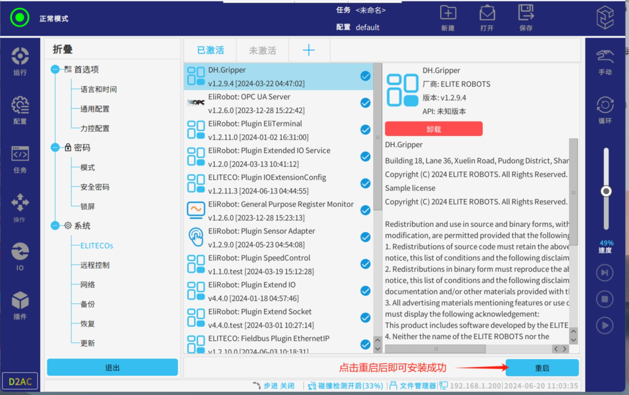 1. 機器人系統(tǒng)版本需在2.9.0及以上;
