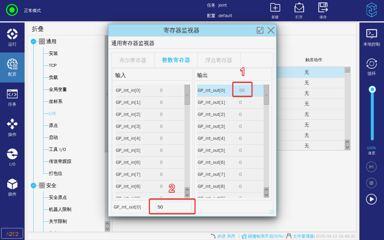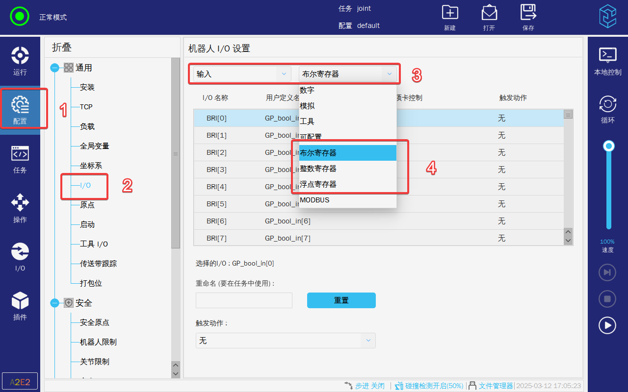 1. 點擊配置-通用-IO,選擇需要更改的輸入輸出寄存器,選擇后進(jìn)行重命名;