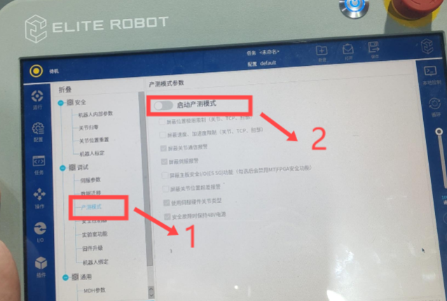 (1)進入專家模式,選擇”產(chǎn)測模式” ,并點擊”啟動產(chǎn)測模式”,如下圖。