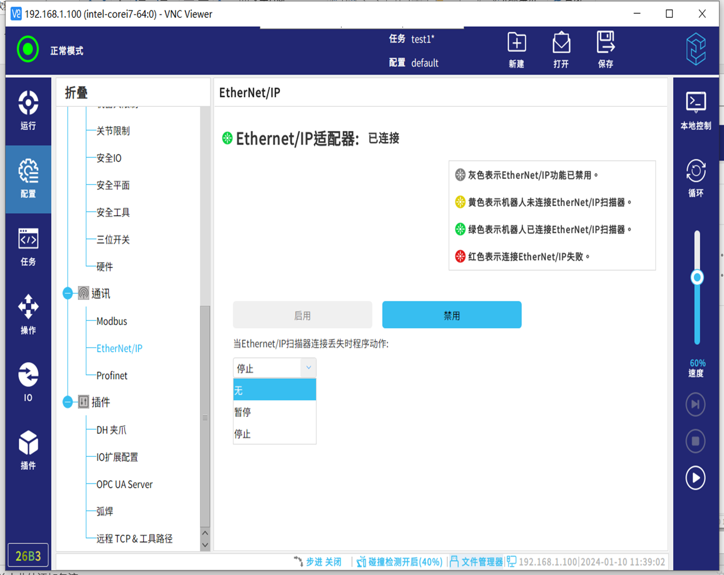 根據(jù)需要Ethernet/IP通訊連接不上選擇程序動(dòng)作是暫時(shí)/停止。
