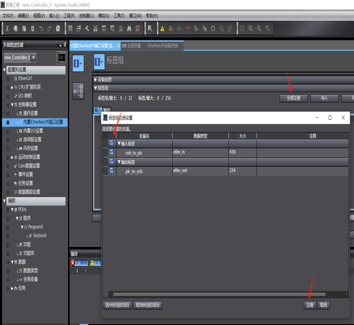 點(diǎn)擊選擇【標(biāo)簽組】,點(diǎn)擊【全部注冊】,將新建的變量全部注冊