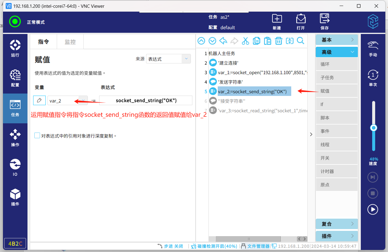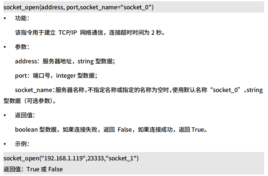 機(jī)器人可以作為socket客戶端,與外部設(shè)備通訊,相關(guān)指令可以參見CS機(jī)器人腳本手冊。