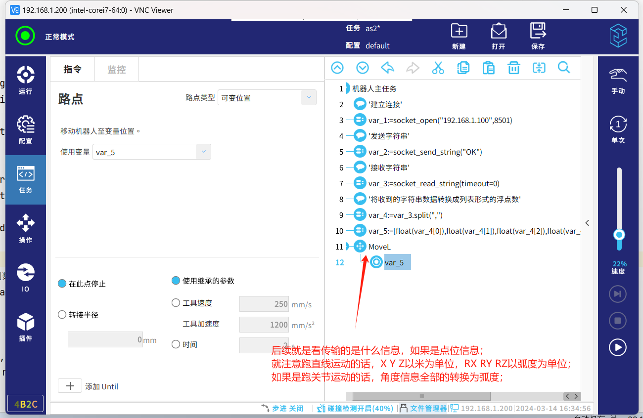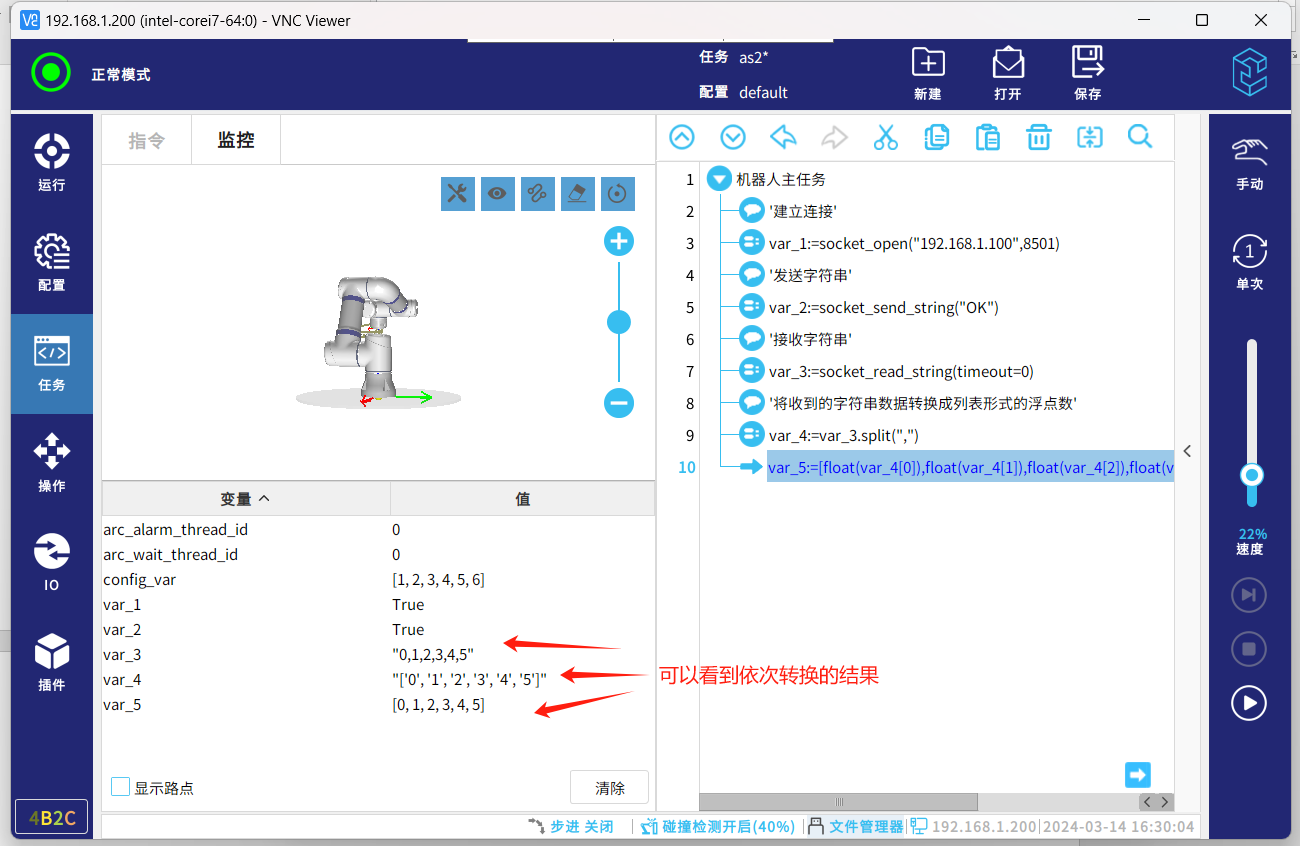 socket通信協(xié)議,一種標(biāo)準(zhǔn)的通信協(xié)議,同時是目前工業(yè)電子設(shè)備之間常用的通訊協(xié)議,市面上機(jī)器人與夾持器,視覺,上位機(jī)等通訊大多采用這種通訊方式。以下介紹機(jī)器人socket通訊基本的幾個指令腳本,傳輸字符串?dāng)?shù)據(jù)和解析字符串?dāng)?shù)據(jù)。