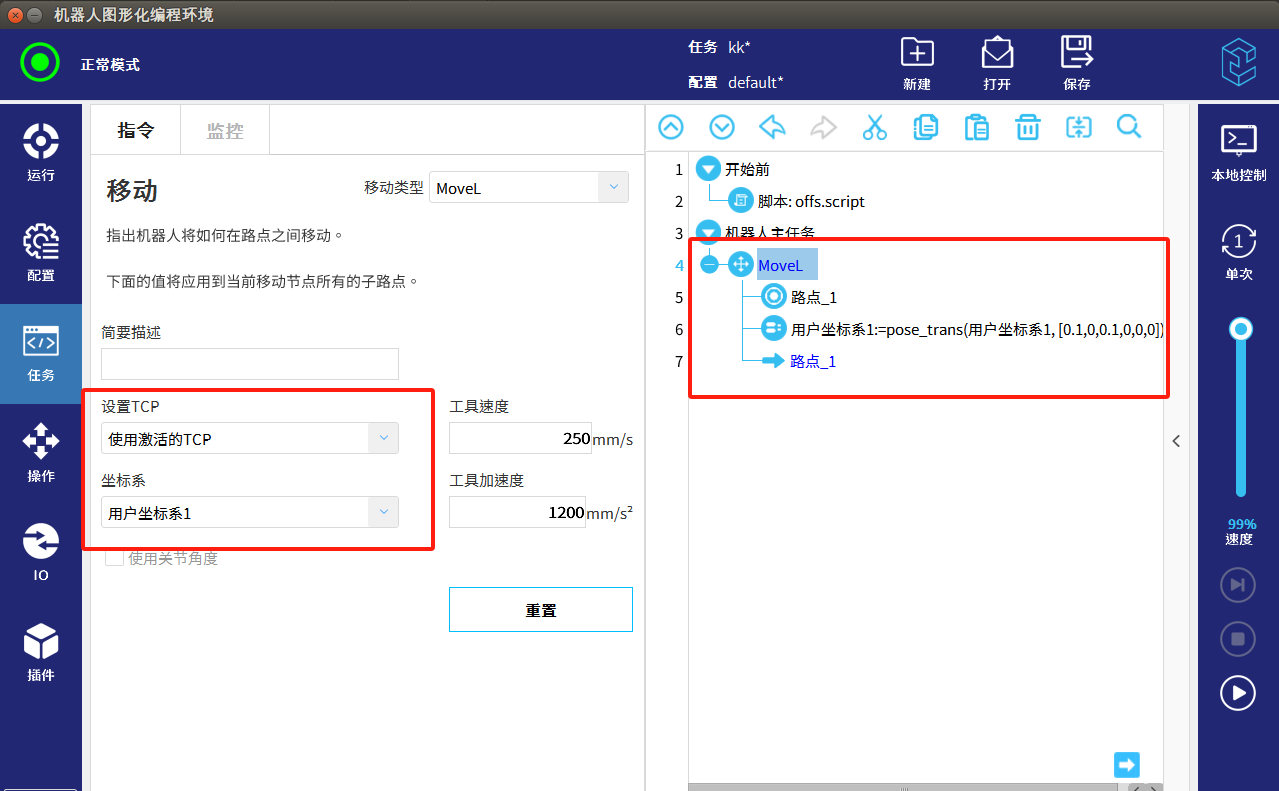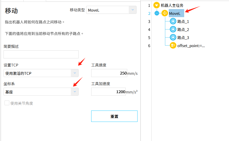 3.4要注意偏移后的點位數據是在那個坐標系下,與移動指令配置中的是否相同。