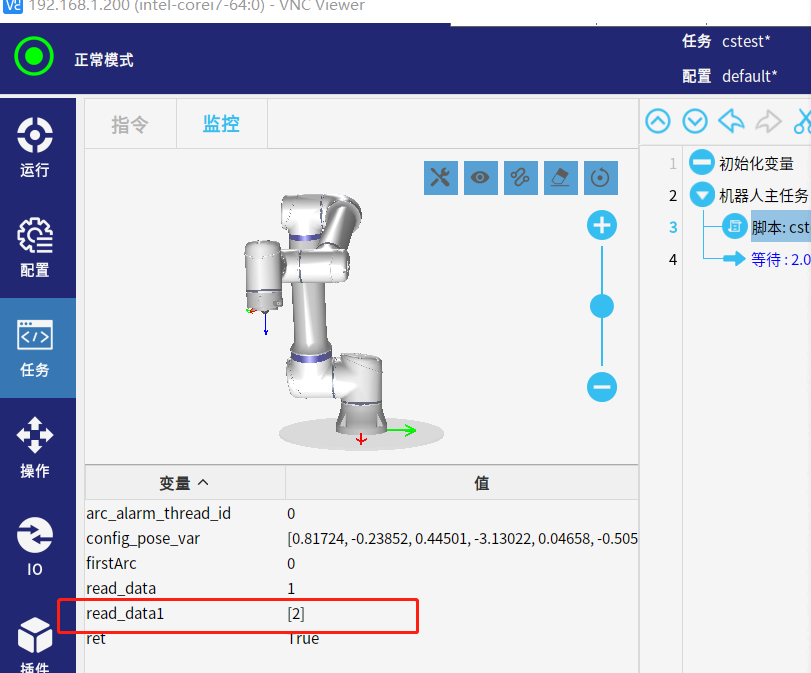 運行腳本后可在調試助手端接收到機器人發(fā)送的數(shù)值