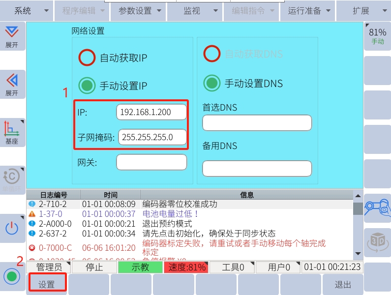 第一步-網(wǎng)線連接-機(jī)器人與PC通過網(wǎng)線連接(機(jī)器人連接接口為FB1口,通過交換機(jī)中轉(zhuǎn)也可以實(shí)現(xiàn))