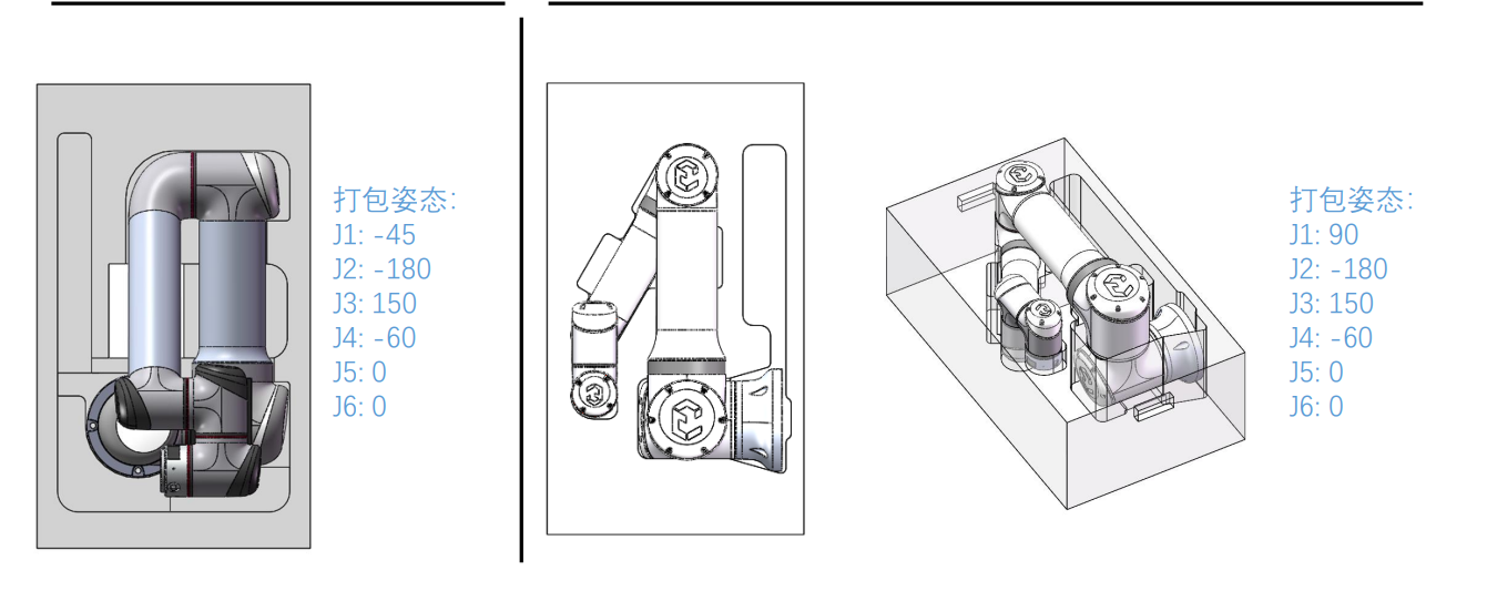打包姿態角度:J1: -45 J2: -180 J3: 150 J4: -60 J5: 0 J6: 0